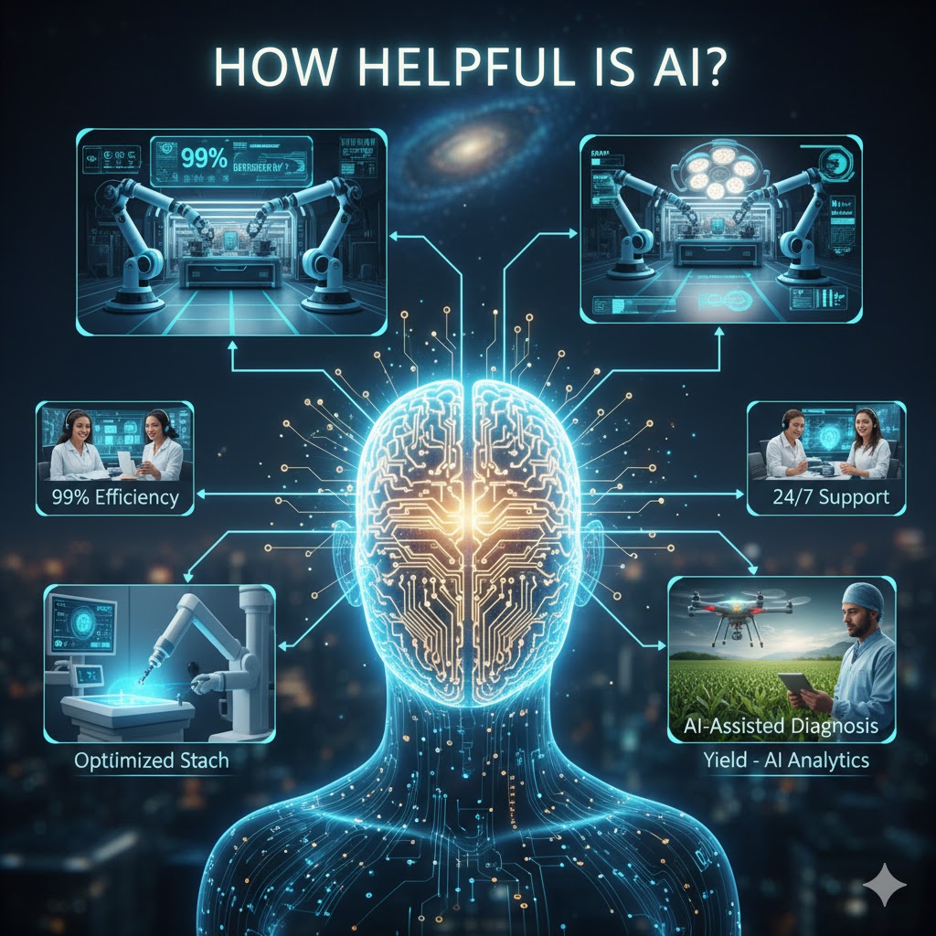 AI is incredibly helpful in everyday life, business, healthcare, and education. Its ability to automate tasks, improve decision-making, and enhance efficiency makes it one of the most valuable technologies of our time. When used responsibly, AI will continue to shape a better, smarter, and more innovative future for everyone.